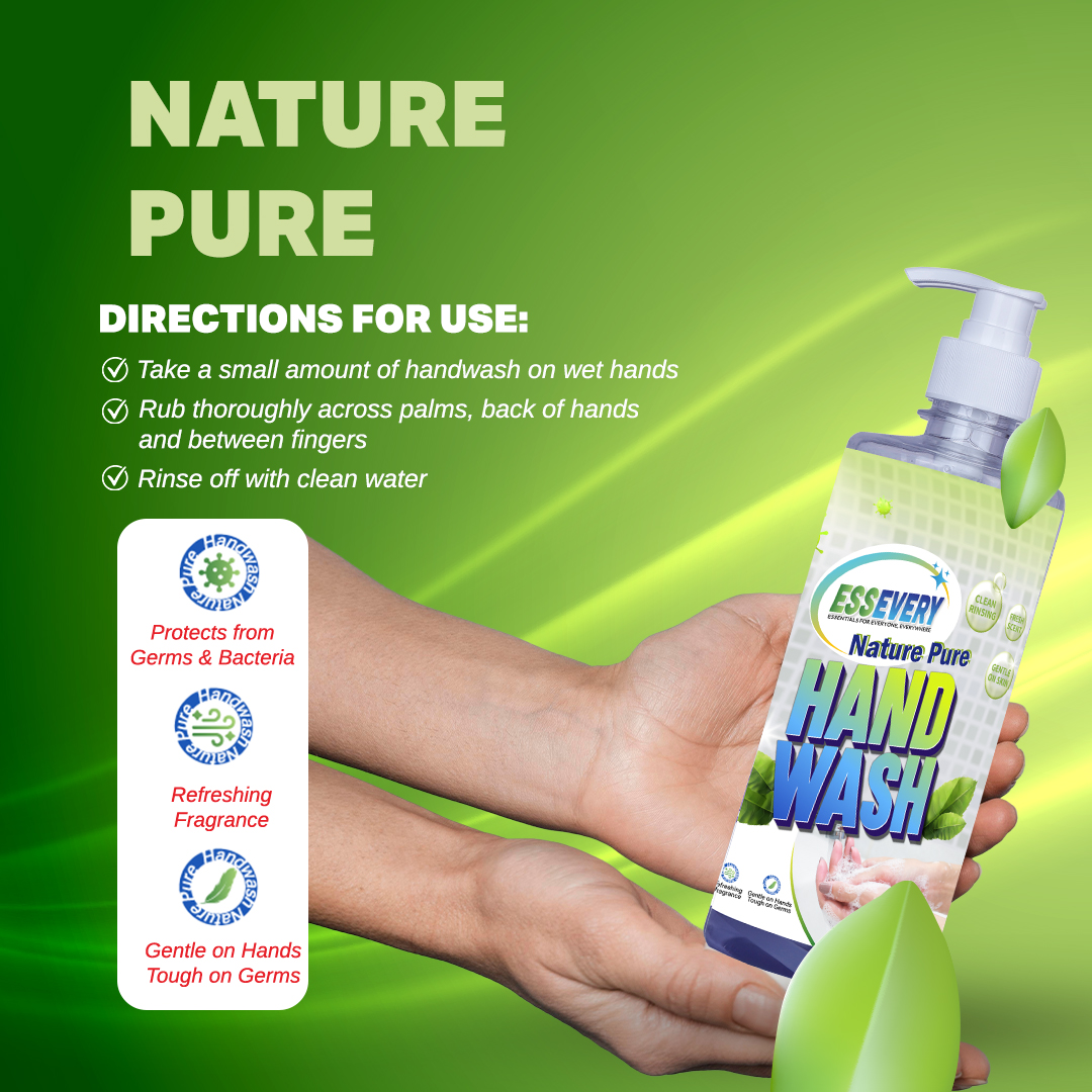 EssEvery Nature Pure Handwash offers gentle cleansing with a refreshing fragrance, suitable for all skin types and daily use.